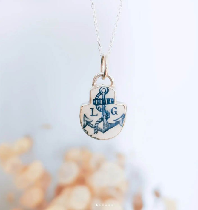 Pendentif Ancre, argent et céramique recyclé d'une ancienne assiette ébrechée ☺️
