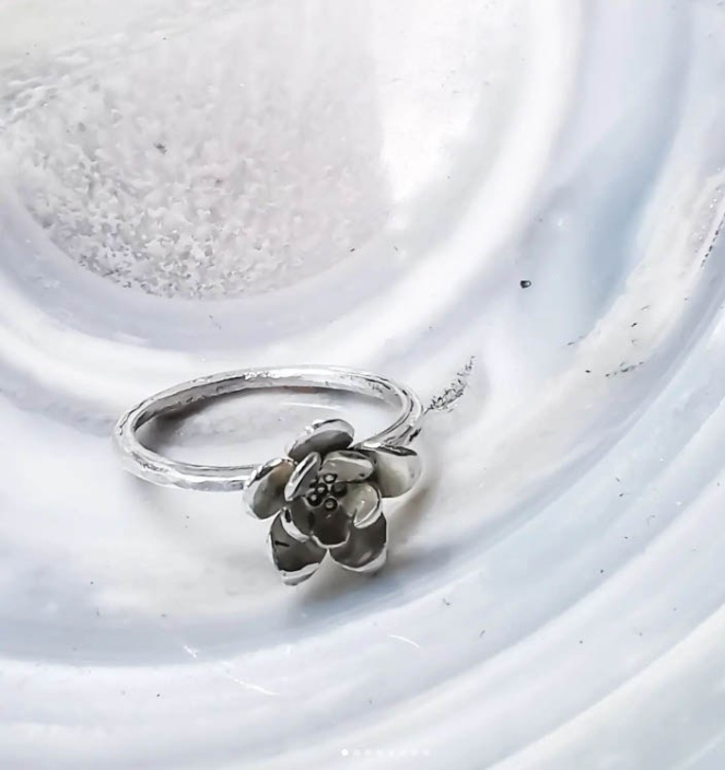 Bague fleur de magnolia en argent 925. Simple et élégante. une pièce unique