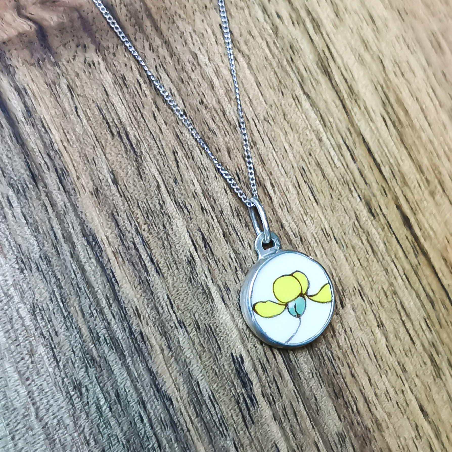 Pendentif délicat d'une jolie céramique et sa fleur de Genet.