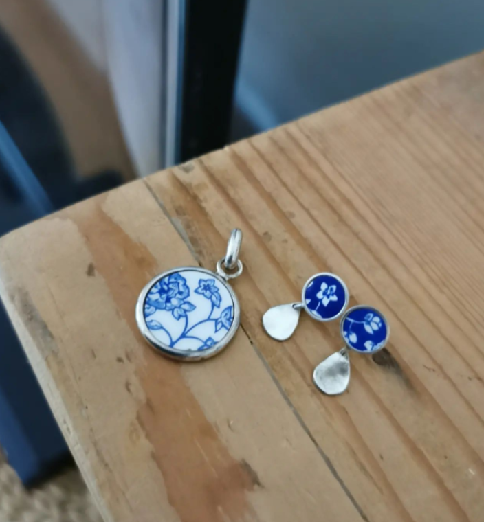 Légère, délicate et agréables à porter, ces nouvelles boucles d'oreilles en porcelaine recyclé avec gouttes d'argent seront habillées vos gracieuses oreilles.
