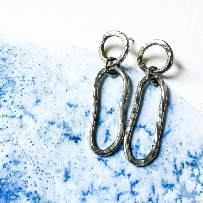 Boucles d'oreille minimaliste en argent martelé. 💙