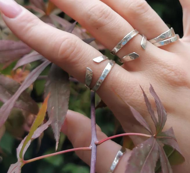 Bague ouverte toute simple et unisexe en argent martelé, à empiler ou à porter seule 😊
