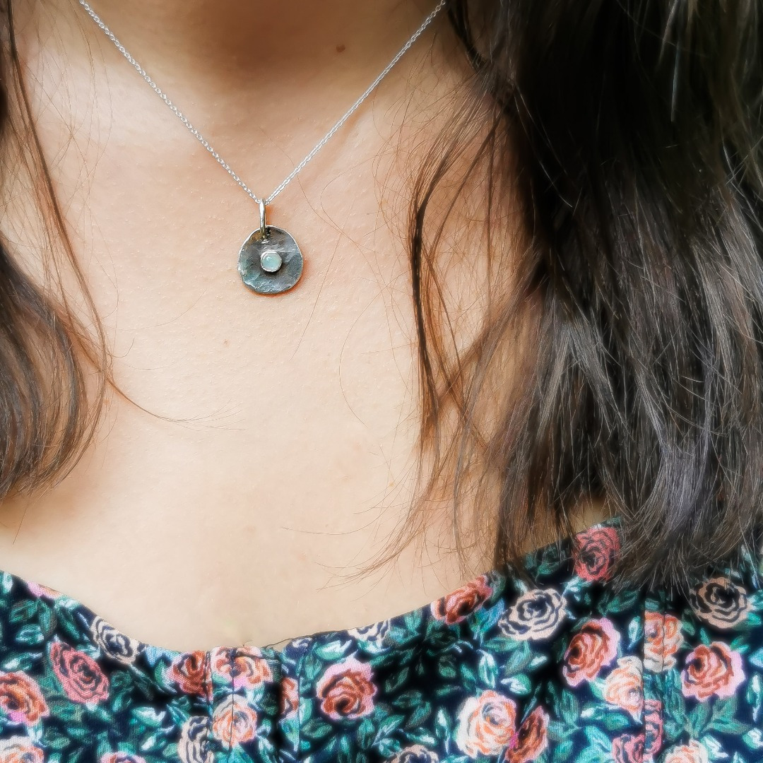Réalisé à partir de mes chutes d'argent que je fait fondre en petites médailles que je viens marteler 😊 de nombreuses pierres sont disponibles 💎 à choisir en fonction de votre intuition 😌