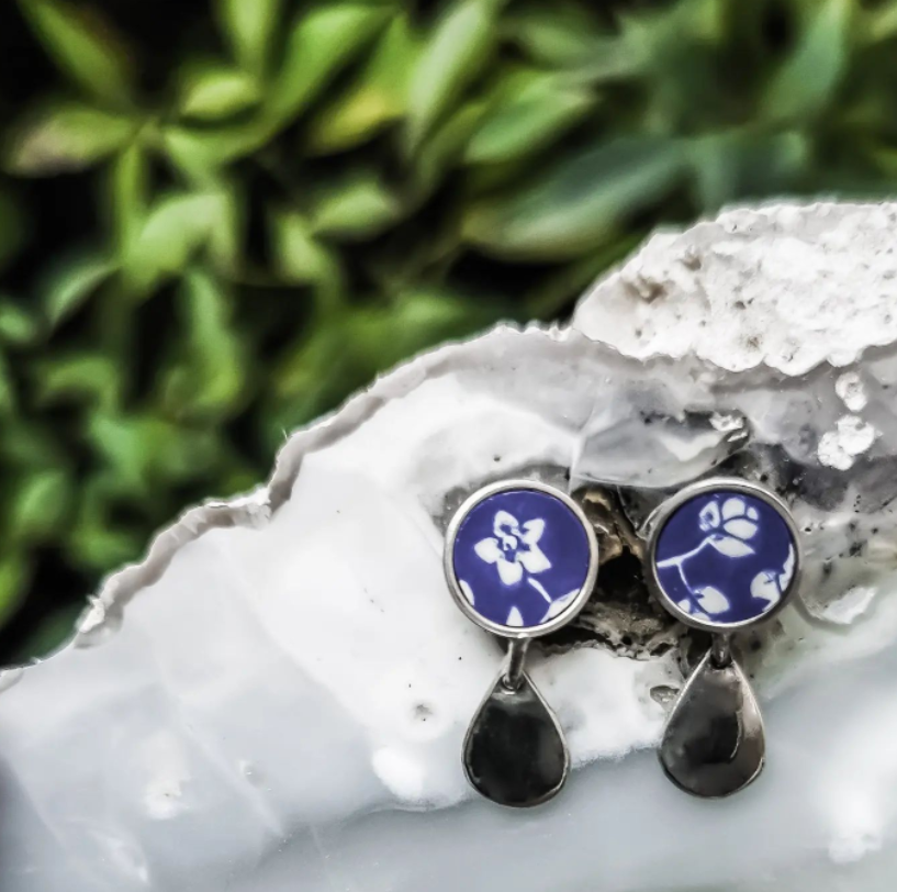 Légère, délicate et agréables à porter, ces nouvelles boucles d'oreilles en porcelaine recyclé avec gouttes d'argent seront habillées vos gracieuses oreilles.