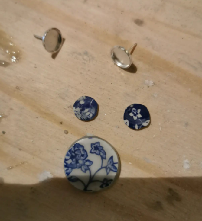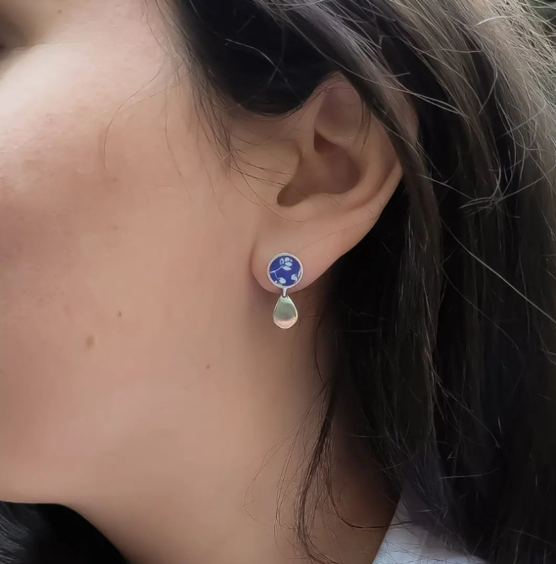 Nouvelles boucles d'oreilles en porcelaine avec gouttes d'argent. 💙