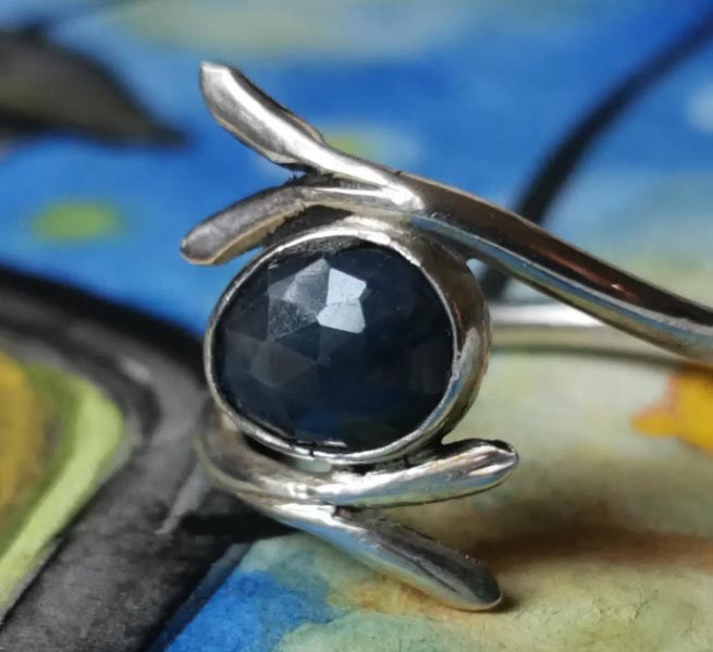 Bague branche en argent 925 et saphir bleu nuit
